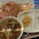 かた焼きそば、ポークしゅうまい、大根のオイル漬け、ちゃーめん、牛乳、フルーツ杏仁