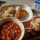 パンプキンアンサンブルエッグ、ポークビーンズ、コールスローサラダ、チーズボックス、牛乳