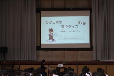生徒会本部生徒の挨拶の後に行われたのが、東中クイズ。