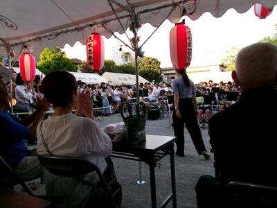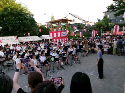 松井小学校を会場に納涼盆踊り大会が催されています。