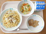エビカツ、鶏肉とれんこんの炒め物、さつま汁、わかめご飯、牛乳